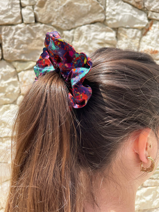 SUNDOWN ORCHADIA PRINT SILK SCRUNCHIE