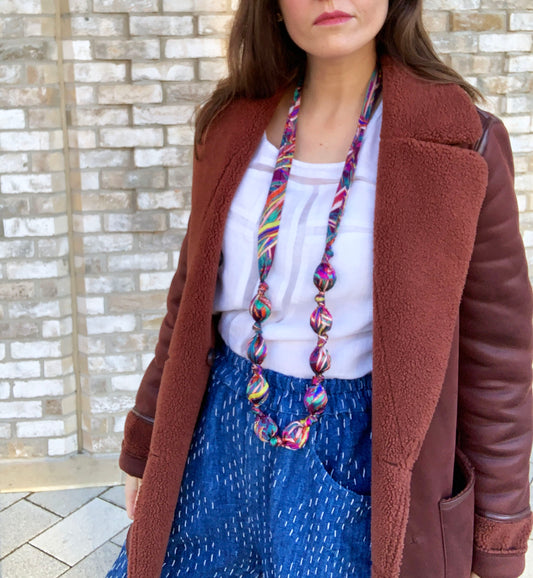 SUNDOWN JUNGLE PRINT SILK BEAD NECKLACE
